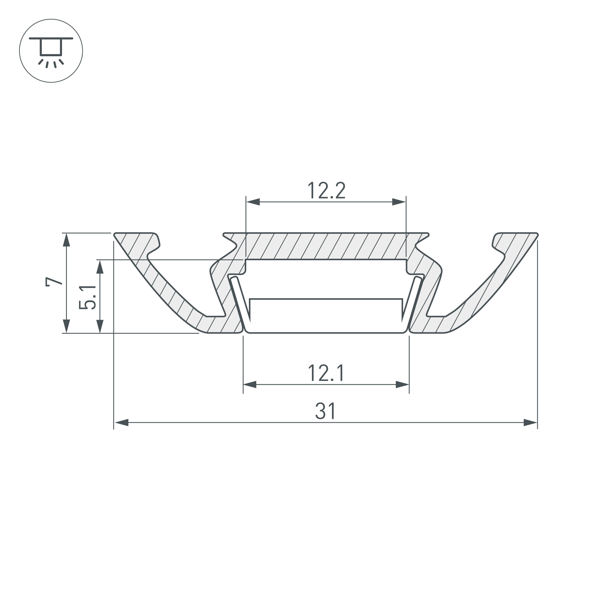 Габаритные размеры (L×W×H): 2000 x 31 x 7 мм. Ширина площадки для ленты 12,2 мм.