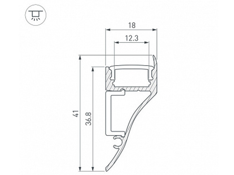 Габаритные размеры (L×W×H): 2000 x 41 x 18 мм. Ширина площадки для ленты 12 мм.