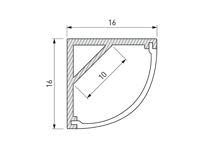 Габаритные размеры (L×W×H): 2000 x 16 x 16 мм. Ширина площадки для ленты 10 мм.