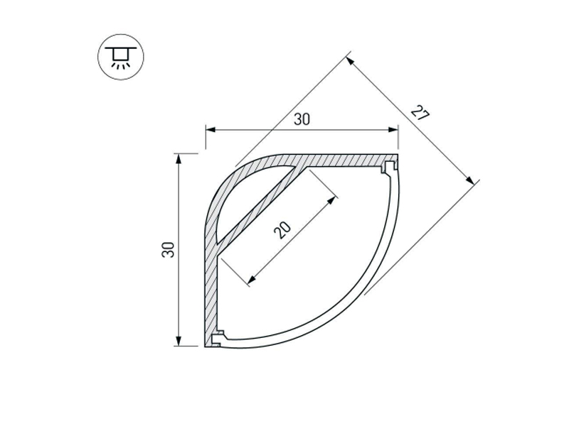 Габаритные размеры (L×W×H): 2000 x 30 x 30 мм. Ширина площадки для ленты 20 мм.