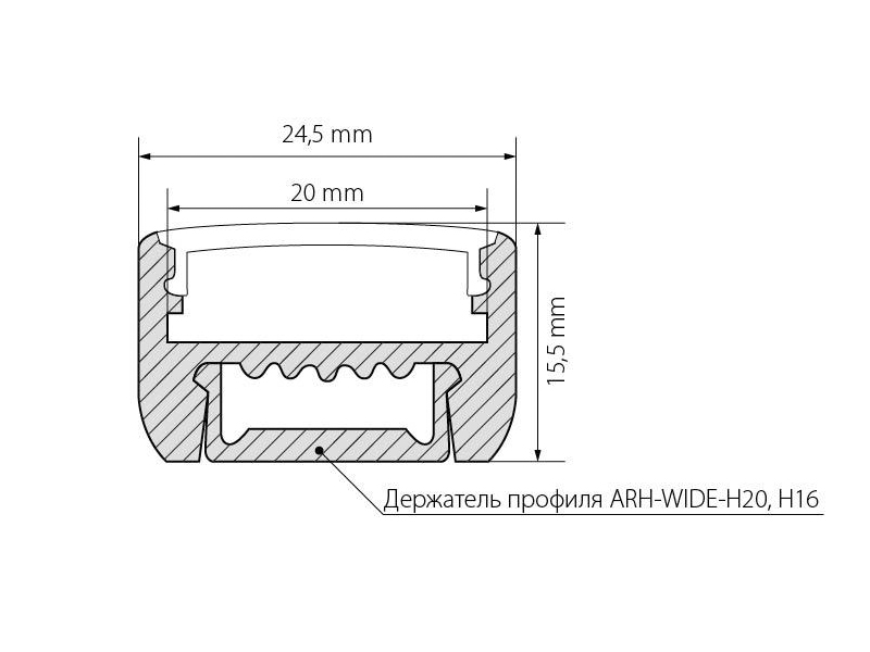 Габаритные размеры (L×W×H): 2000 x 24,5 x 15,5 мм. Ширина площадки для ленты 20 мм.
