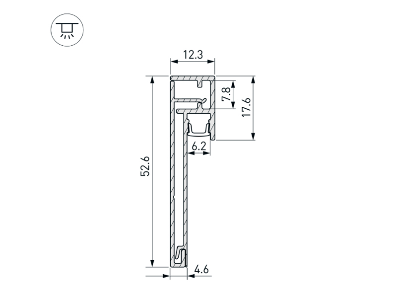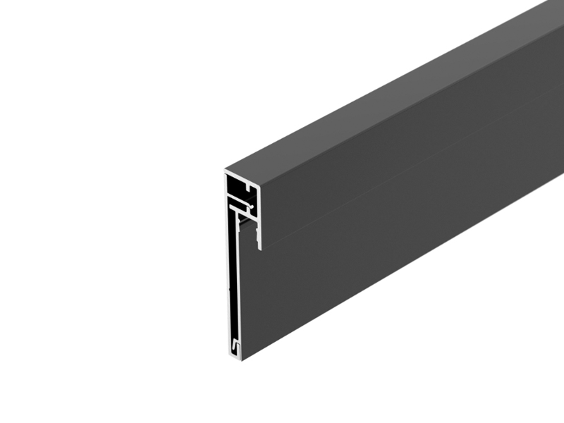 Накладной двухкомпонентный алюминиевый профиль-плинтус черного цвета для контурной подсветки помещения. Габаритные размеры этого профиля составляют 2000 мм в длину, 12,3 мм в ширину и 52,6 мм в высоту. Площадка для установки светодиодных лент позволяет использовать ленту шириной до 5 мм и мощностью до 20 Вт/м. Это обеспечивает гибкость в выборе светодиодных лент и создает потрясающие световые решения.