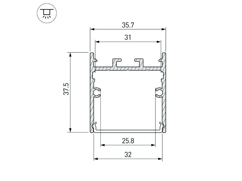 Габаритные размеры профиля составляют 3000 мм в длину, 36 мм в ширину и 38 мм в высоту. Площадки для установки светодиодных лент позволяют использовать ленты шириной до 31 мм и мощностью до 36,7 Вт/м. Это обеспечивает гибкость в выборе светодиодных лент и создает потрясающие световые решения.