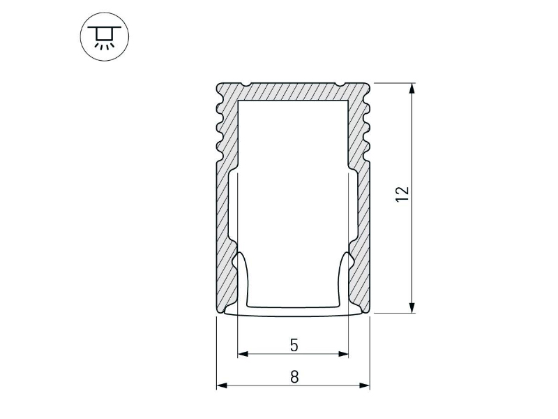 Габаритные размеры (L×W×H): 2000 x 8 x 12 мм. Ширина площадки для ленты 5 мм.