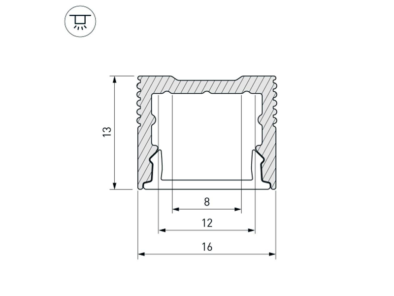 Габаритные размеры (L×W×H): 2000 x 16 x 13 мм. Ширина площадки для ленты 12 мм.