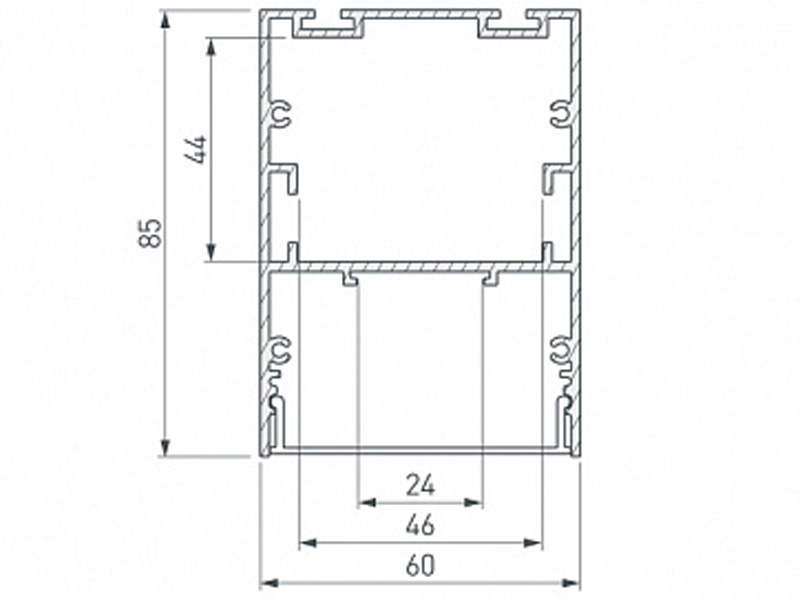Габаритные размеры (L×W×H): 2000 x 60 x 85 мм. Ширина площадки для ленты 24 мм.