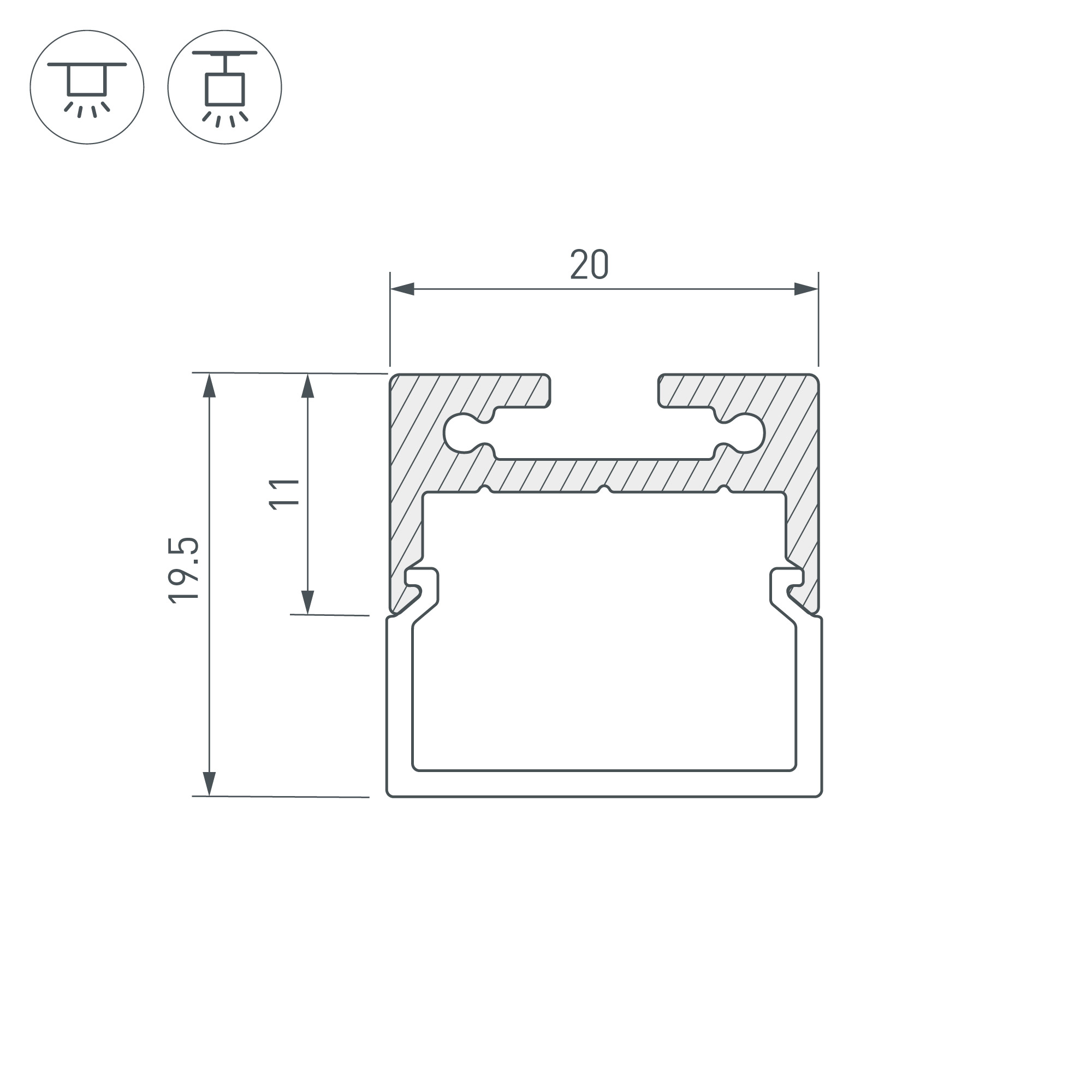 Габаритные размеры (L×W×H): 2000 x 20 x 11 мм. Ширина площадки для ленты 16,5 мм.