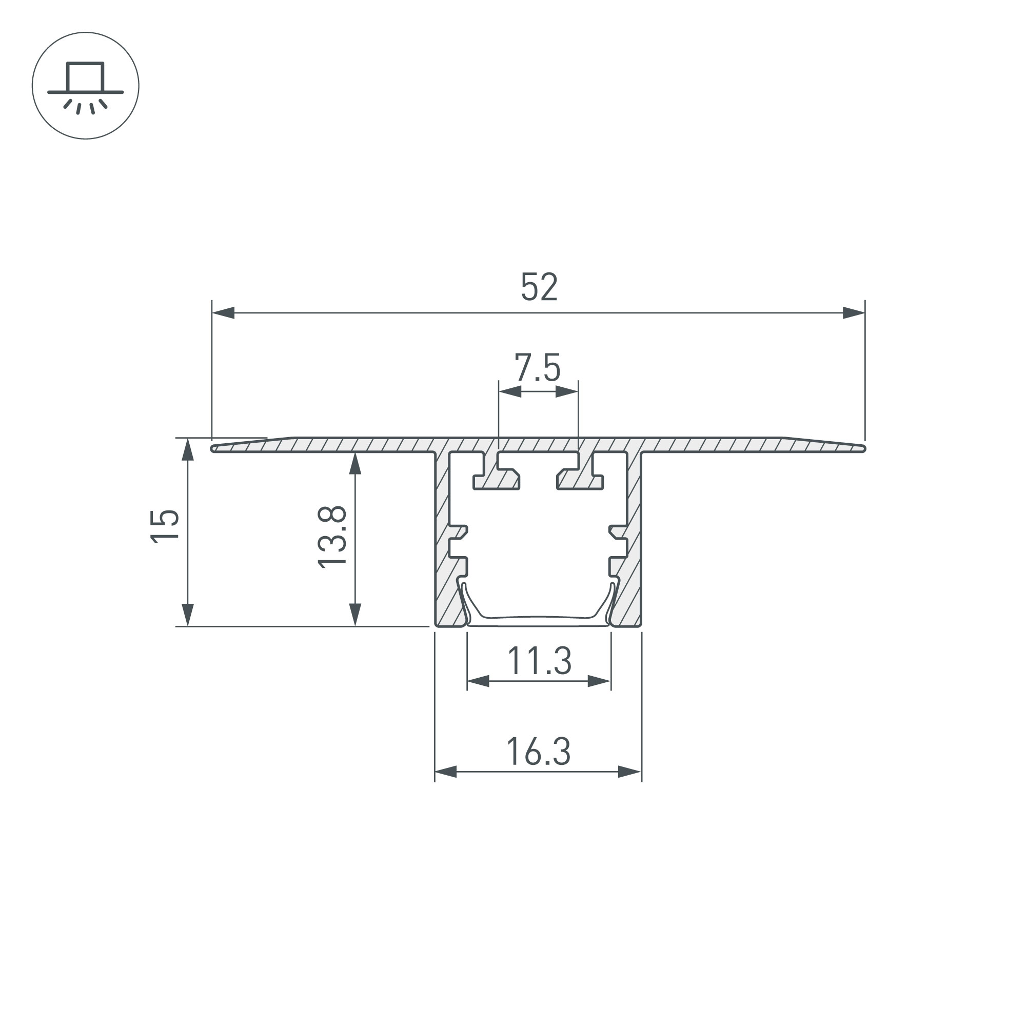 Встраиваемый профиль со скрытым фланцем из анодированного алюминия для контурной подсветки. Совместим с накладным профилем 035020.