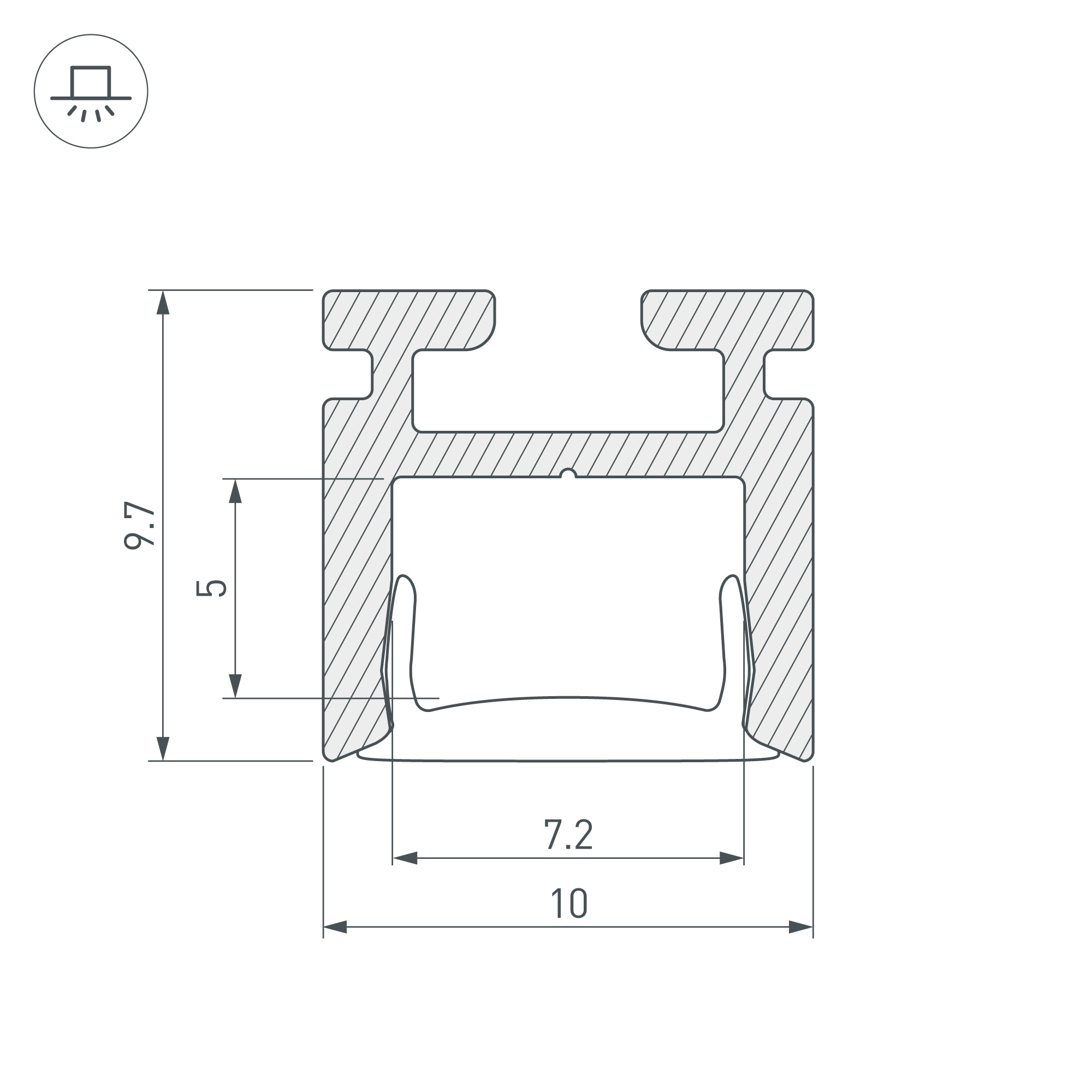 Скрытой установки. Габаритные размеры (L×W×H): 2000 x 10 x 9,7 мм.