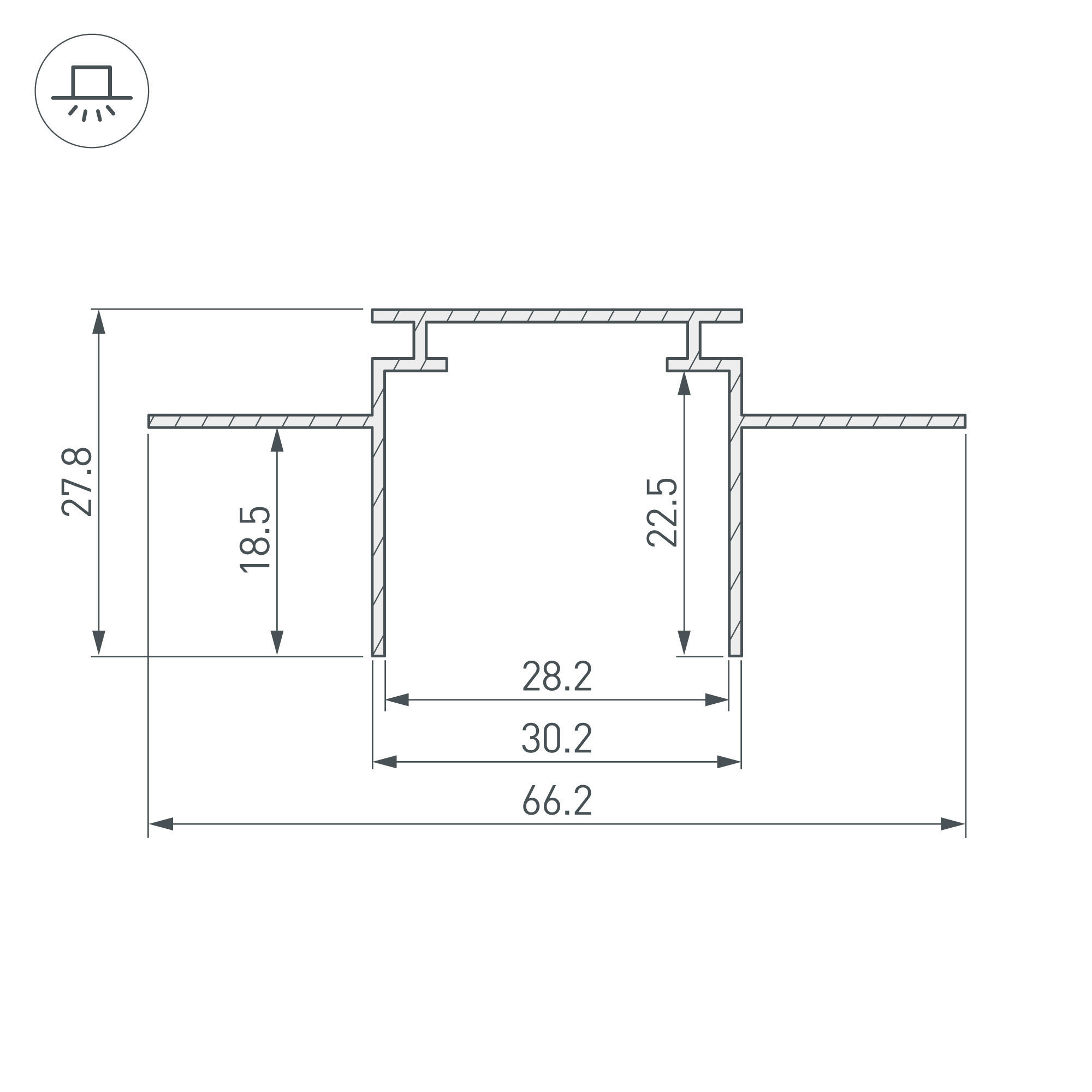 Габаритные размеры (L×W×H): 2000 x 66 x 28 мм. Заглушки и другие аксессуары приобретаются отдельно.