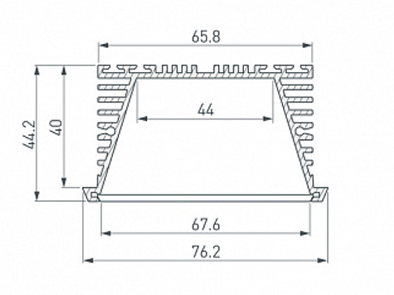 Габаритные размеры (L×W×H): 2000 x 76,2 x 44,2 мм. Ширина площадки для ленты 44 мм.