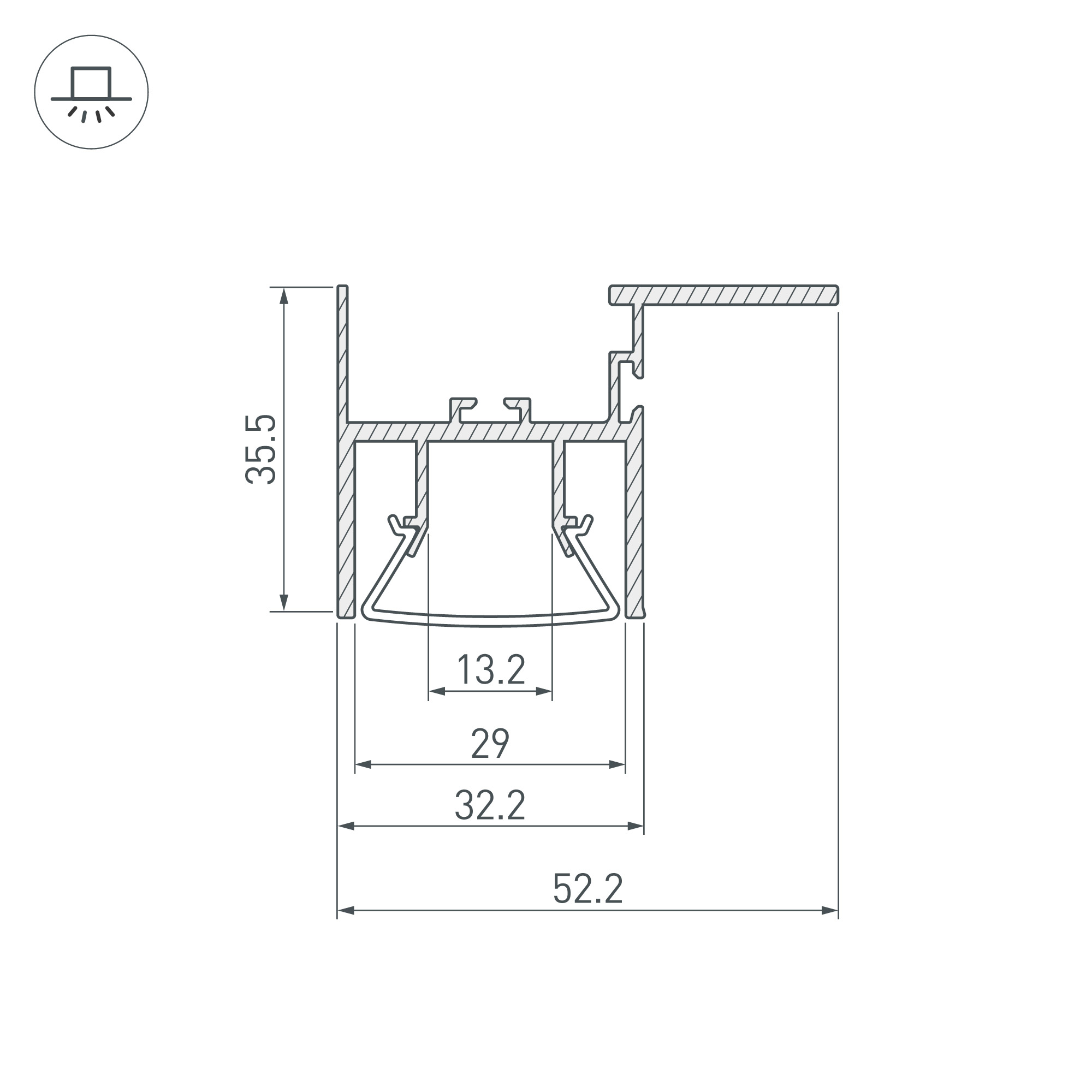 Глубина установки источника света, мм