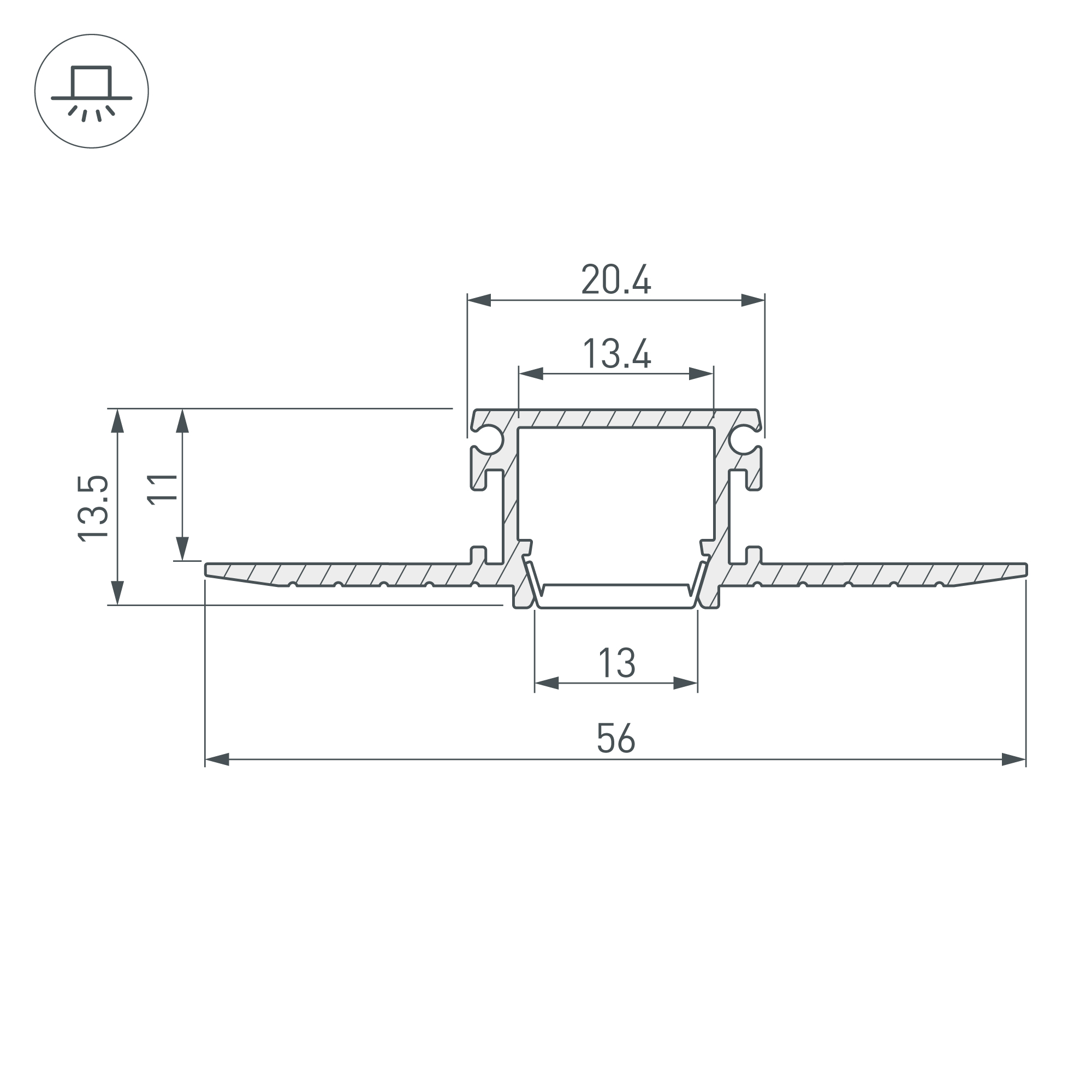 Встраиваемый в гипсокартон, под строительную отделку. Позволяет создать узкую элегантную линию света без видимых частей алюминия.