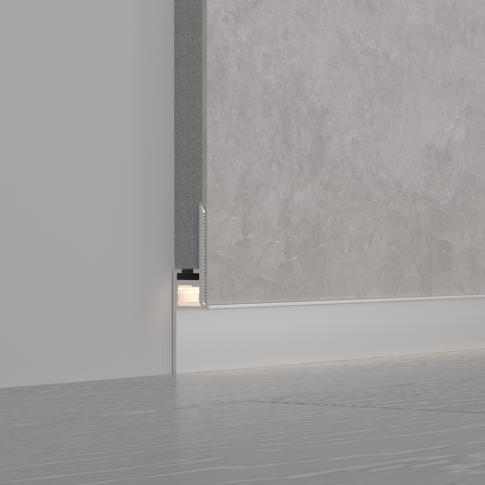 Экран, заглушки и другие аксессуары не включены в комплект и приобретаются отдельно. Для данной модели профиля представлено два вида экрана: силиконовый экран W10-5000 SILICONE 043661 (совместим с заглушками PLINTUS-FANTOM-BENT 043898 и 043664) и пластиковый экран W10-2000 OPAL 043606 (совместим с заглушками PLINTUS-FANTOM 043607 и 043906).