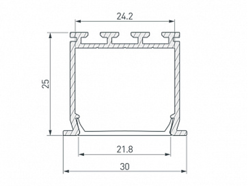 Габаритные размеры (L×W×H): 3000 x 30 x 25 мм. Ширина площадки для ленты 22 мм.