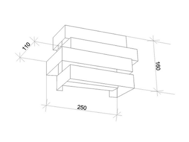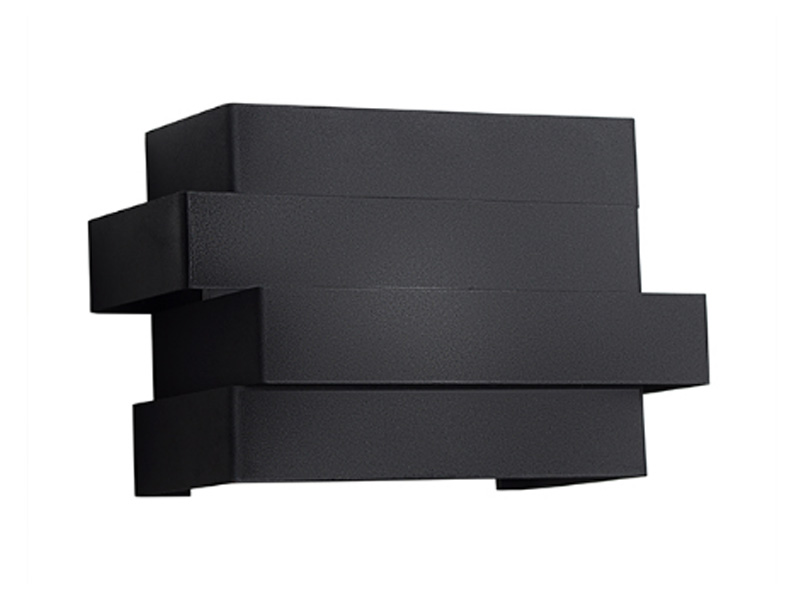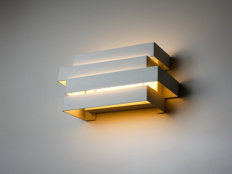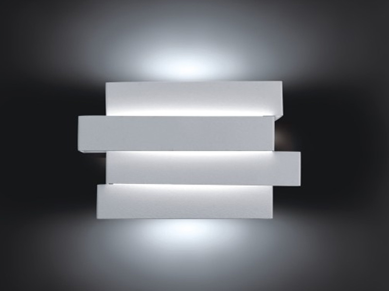 Светодиоды вмонтированы на внутренней стороне прямоугольников, которые установлены один на другой с поперечным сдвигом. Причем свет из внутренней части каждого элемента направлен как вверх, так и вниз. Попадая на стену выше и ниже бра, свет рассеивается на микронеровностях поверхности стены и обеспечивает мягкое освещение.