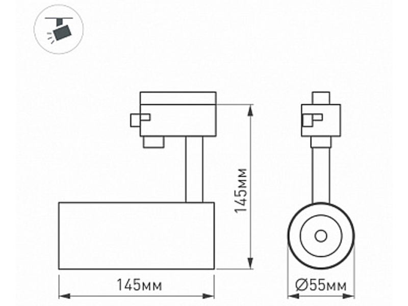 Размер: диаметр 55 мм, высота 145 мм. Монтаж на трек 1-фазный. Драйвер встроенный 27-38 В, 260 мА., пульсация <1%.