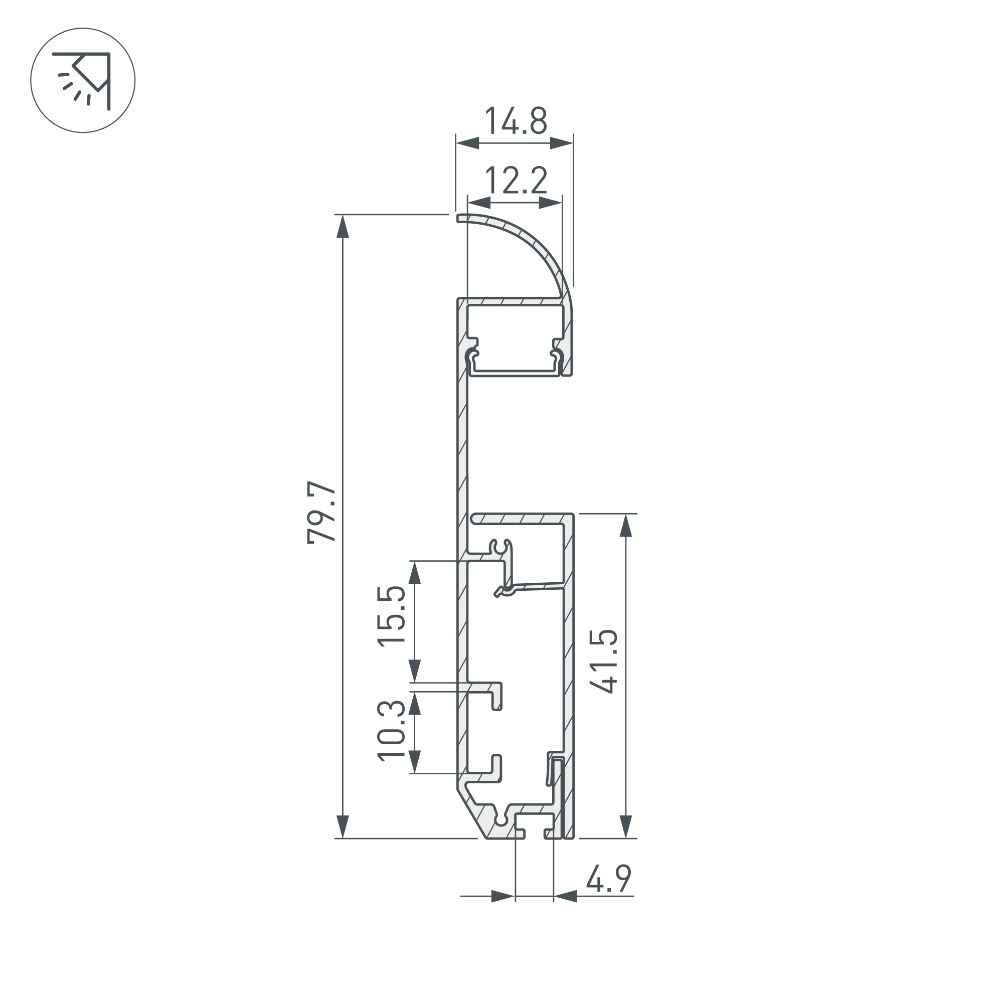 Накладной двухкомпонентный алюминиевый профиль-плинтус с кабель-каналом черного цвета для контурной подсветки помещения. Габаритные размеры этого профиля составляют 2000 мм в длину, 14,8 мм в ширину и 79,7 мм в высоту. Площадка для установки светодиодных лент позволяет использовать ленту шириной до 8 мм и мощностью до 20 Вт/м. Это обеспечивает гибкость в выборе светодиодных лент и создает потрясающие световые решения.